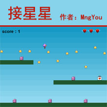 玩法:碰到小狗掉血,捡到血包急加血,接完所有星星,再接钻石过关。